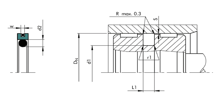 密封安裝在ISO7425標(biāo)準(zhǔn)的溝槽中。設(shè)計選用時請參考Trelleborg公司AQ系列標(biāo)準(zhǔn)。
